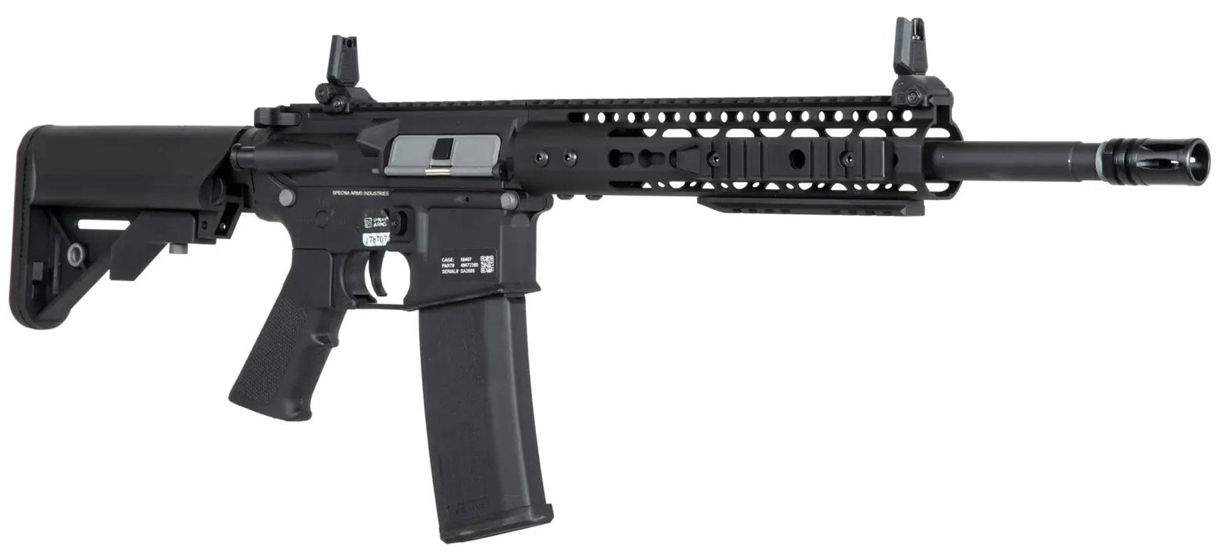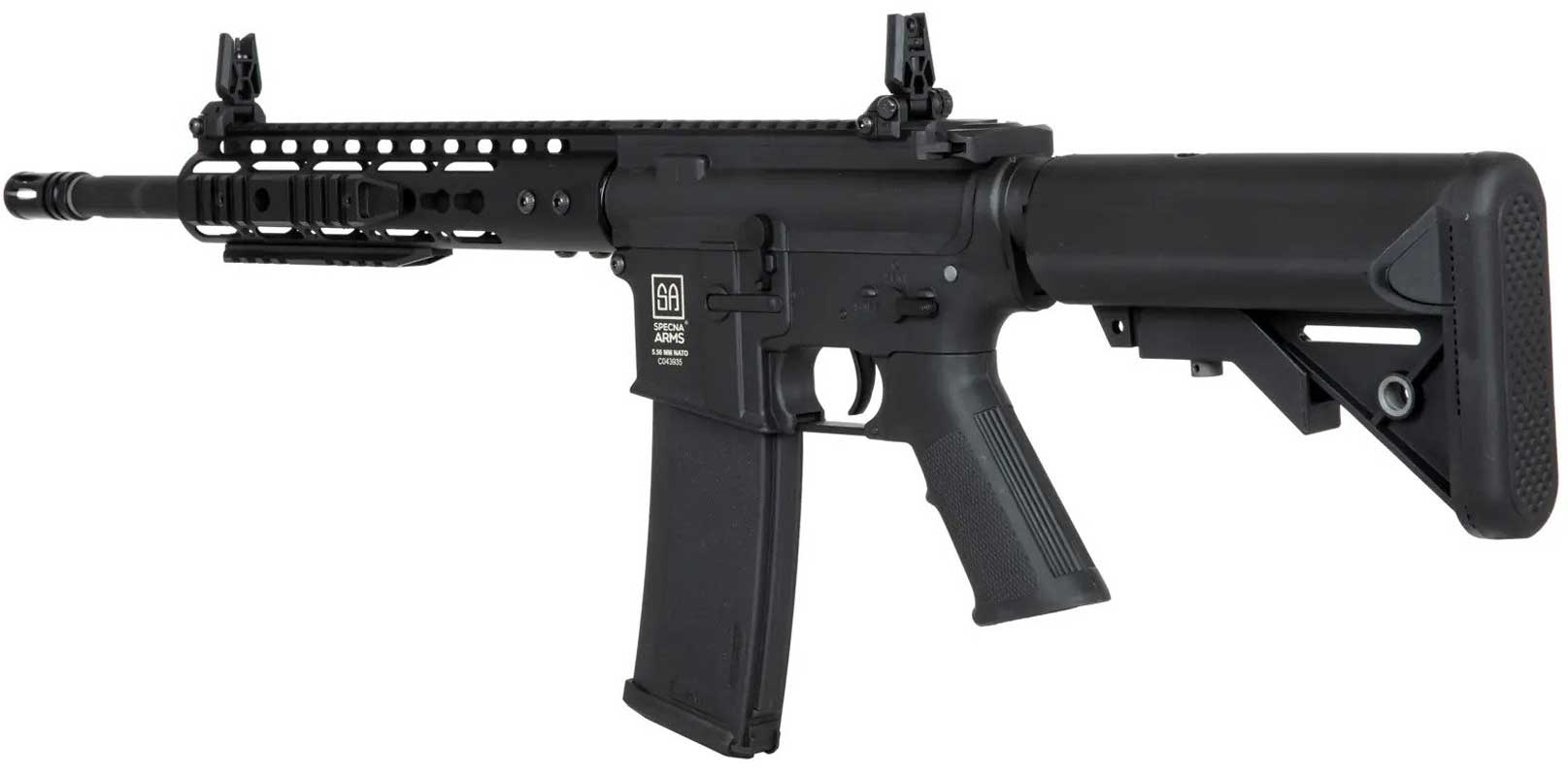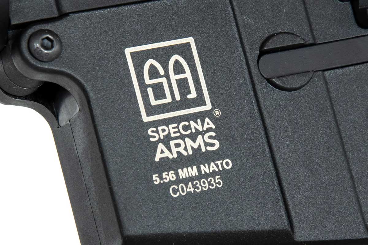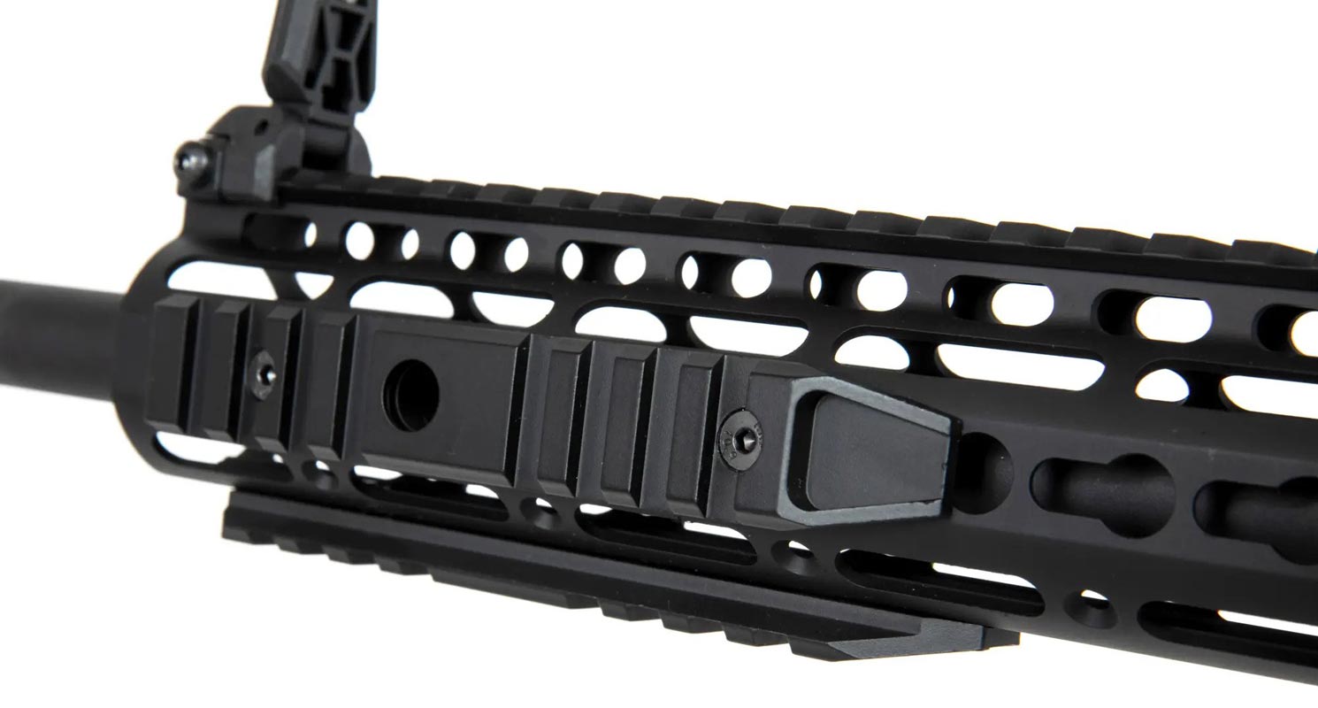 Specna Arms core Ca-C09 taktisk keymod HAL Mosfet edition Specna Arms core Ca-C09 taktisk keymod som kommer med metal keymod front. Specna Arms core Ca-C09 taktisk keymod geværet kommer med forstærket gearboks, gearhjul og ESA quick spring change system, der gør det muligt hurtigt at skifte fjeder. Geværet har med sin lange keymod front masser af muligheder for montering af div. udstyr og tilbehør. Reciver på geværet er fremstilet i nylon fiber, der giver ekstra styrke og en flot overflade. Godt gevær der skyder godt og stabilt med mange muligheder for opgradering. Geværet leveres med 8 mm bøninger i gearboksen øget styrke. Denne Core SA-C08 keymod dual tone kommer med programmerbar HAL mosfet som kommer med en lang række af funktioner, der lader dig konfigurere din riffel næsten som du ønsker det. HAL mosfet er let at programmere via aftrækkeren så intet ekstra udstyr kræves, og alle indstillinger kan let omstilles. Data.: * Skyder 115 m/s ( målt med 0,20g kugler ) * Magasinet kan holde på 300 kugler. * Længden er 71 / 79 cm. ( kolben foldet ind / ud ) * Løbet måler 38 cm. * Vægten er 2,34 kg. * Hop up er justerbar * Fremstillet i ABS fiber med metal front. * Keymod rail * Forstærket gear og gearboks. * ESA quick spring change. * HAL programmerbar mosfet installeret. * Leveres i sort farve. * Sigter der kan lægges ned. * Kolben kan justeres i længden. * Produceret af Specna Arms. Pakken indeholder.: * CA-C09 riffel. * 300 skuds S-mag magasin * Manual over geværet. * ekstra M90 fjeder. Dette gevær leveres uden batteri og lader. Vi anbefaler vores 11,1v LiPo batteri pakke med 1100 mAh for optimal ydelse. Vi anbefaler 0,20g kugler til denne model. Husk at købe Bio Kugler for et grønnere milijø.