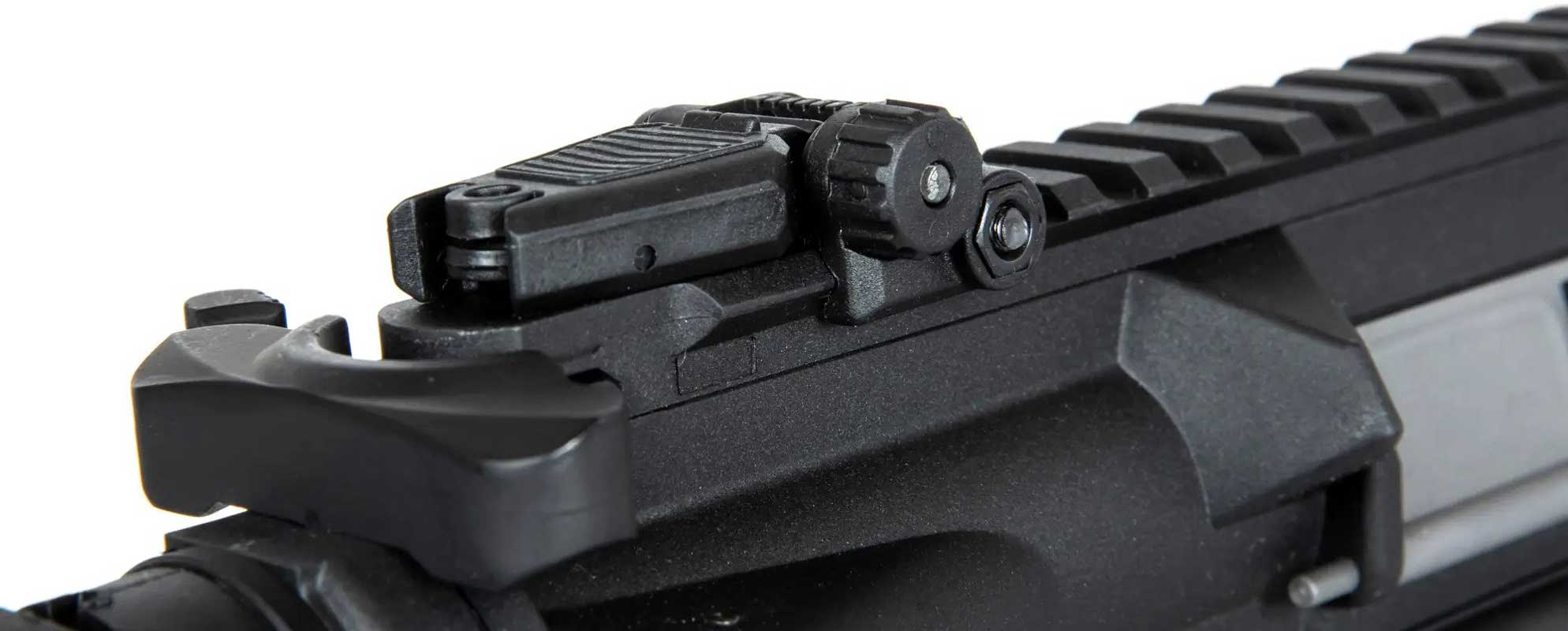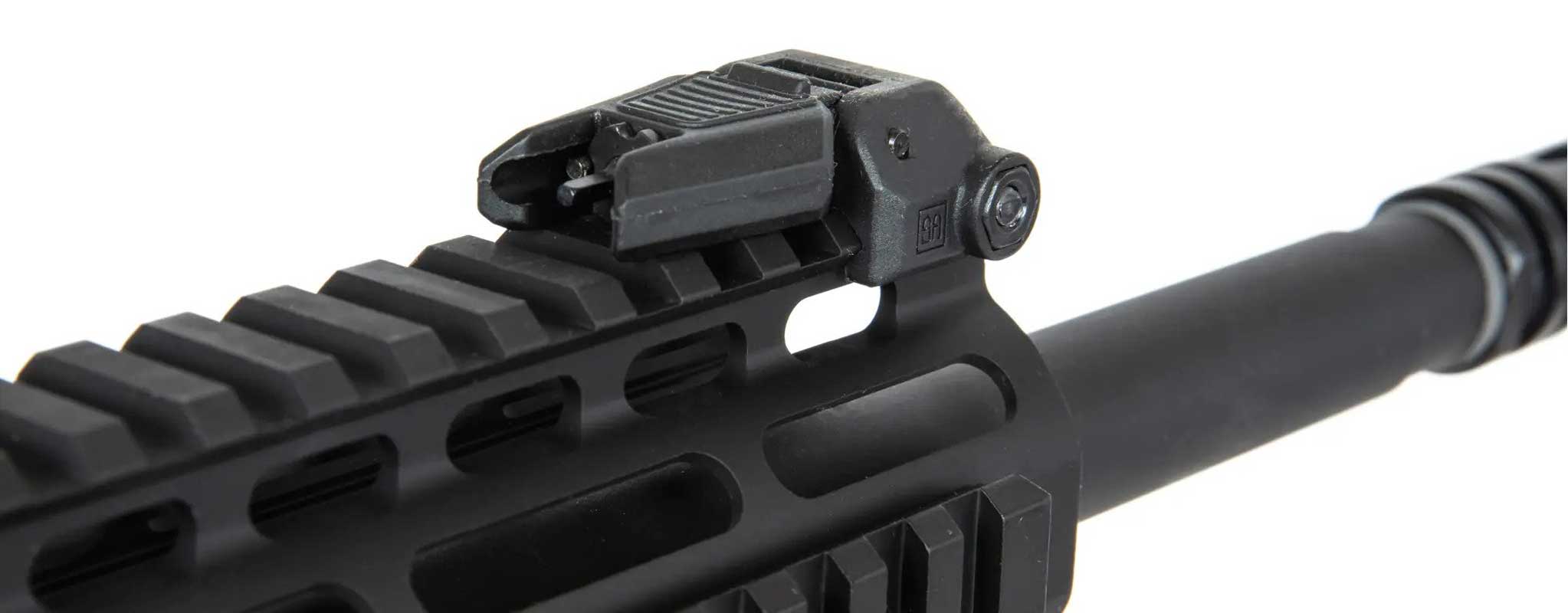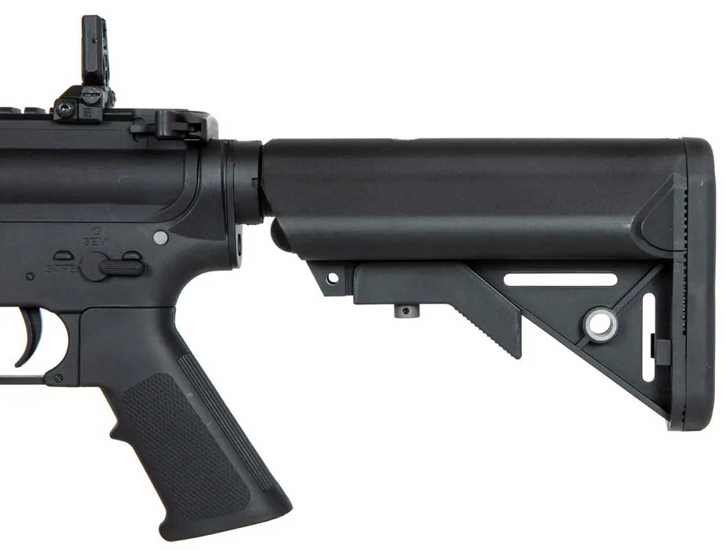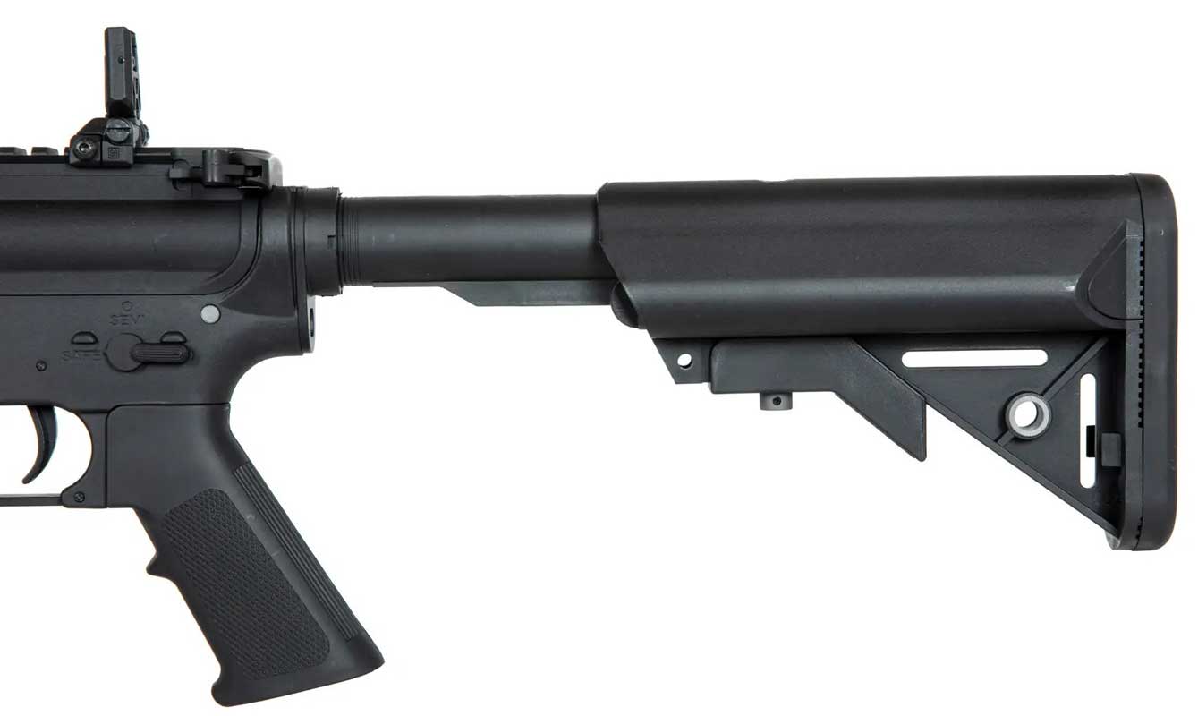 Specna Arms core Ca-C09 taktisk keymod HAL Mosfet edition Specna Arms core Ca-C09 taktisk keymod som kommer med metal keymod front. Specna Arms core Ca-C09 taktisk keymod geværet kommer med forstærket gearboks, gearhjul og ESA quick spring change system, der gør det muligt hurtigt at skifte fjeder. Geværet har med sin lange keymod front masser af muligheder for montering af div. udstyr og tilbehør. Reciver på geværet er fremstilet i nylon fiber, der giver ekstra styrke og en flot overflade. Godt gevær der skyder godt og stabilt med mange muligheder for opgradering. Geværet leveres med 8 mm bøninger i gearboksen øget styrke. Denne Core SA-C08 keymod dual tone kommer med programmerbar HAL mosfet som kommer med en lang række af funktioner, der lader dig konfigurere din riffel næsten som du ønsker det. HAL mosfet er let at programmere via aftrækkeren så intet ekstra udstyr kræves, og alle indstillinger kan let omstilles. Data.: * Skyder 115 m/s ( målt med 0,20g kugler ) * Magasinet kan holde på 300 kugler. * Længden er 71 / 79 cm. ( kolben foldet ind / ud ) * Løbet måler 38 cm. * Vægten er 2,34 kg. * Hop up er justerbar * Fremstillet i ABS fiber med metal front. * Keymod rail * Forstærket gear og gearboks. * ESA quick spring change. * HAL programmerbar mosfet installeret. * Leveres i sort farve. * Sigter der kan lægges ned. * Kolben kan justeres i længden. * Produceret af Specna Arms. Pakken indeholder.: * CA-C09 riffel. * 300 skuds S-mag magasin * Manual over geværet. * ekstra M90 fjeder. Dette gevær leveres uden batteri og lader. Vi anbefaler vores 11,1v LiPo batteri pakke med 1100 mAh for optimal ydelse. Vi anbefaler 0,20g kugler til denne model. Husk at købe Bio Kugler for et grønnere milijø.