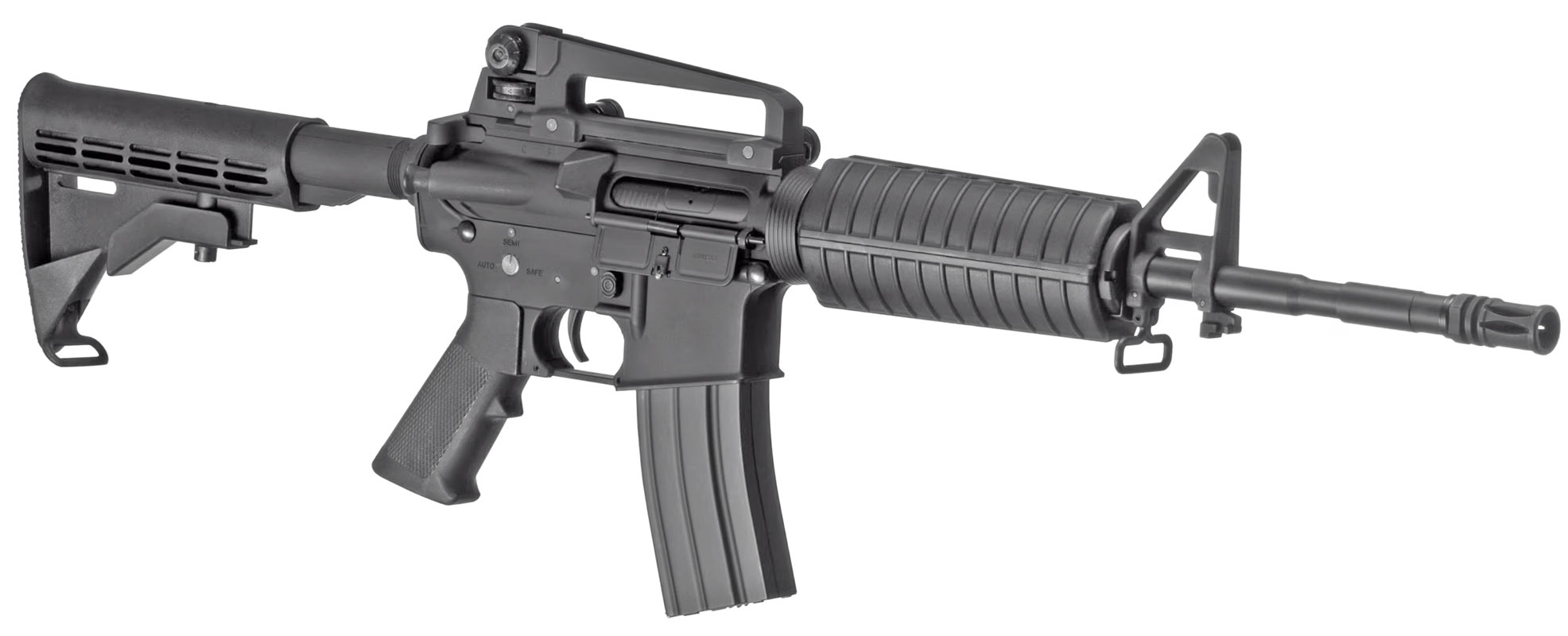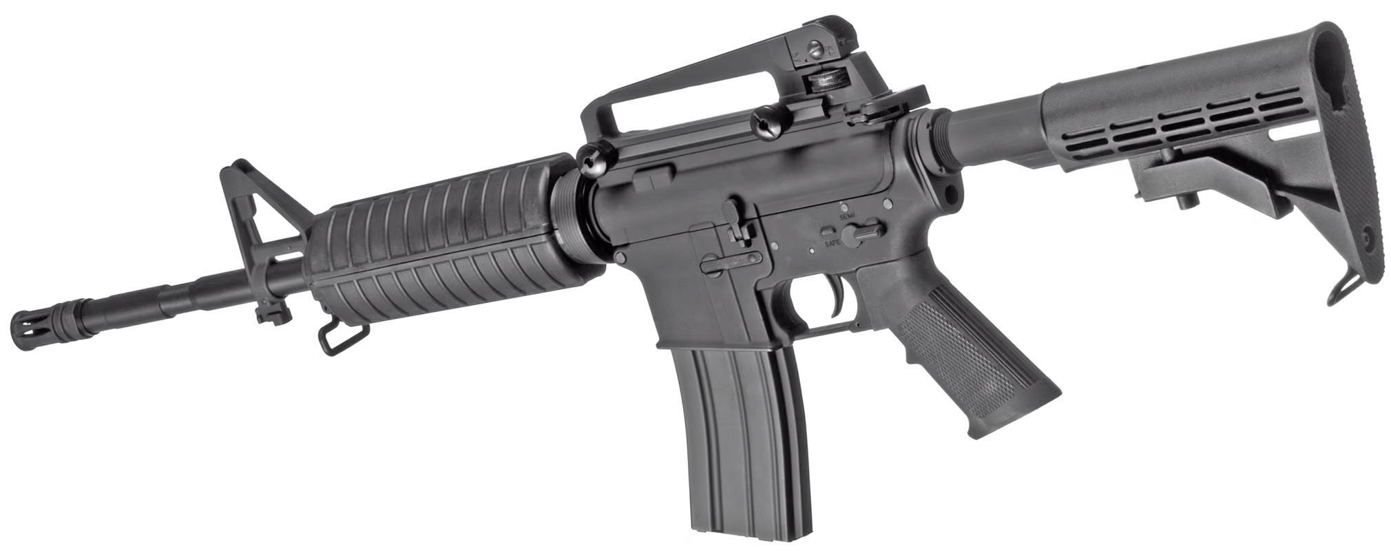 Cyma M4 som er fremstillet helt i metal og leveres komplet med batteri og lader. M4 modellen fra Cyma har et flot finish og en vægt på hele 2,9 kg. Håndtaget på geværet er let at tage af så der kan monteres forskellige sigter. Kolben kan justeres i længden og batteriet er placeret i frontgrebet.
