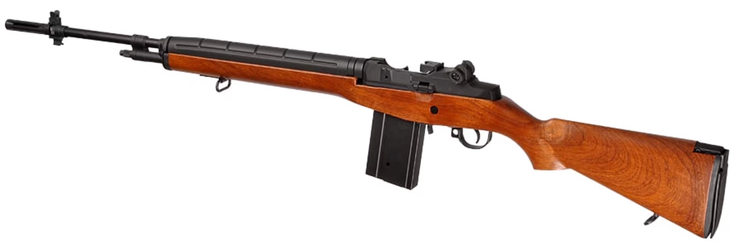 M14 komplet sæt fra Cyma i Træ farve, som er fremstillet helt i metal med ABS fiber kolbe. M14 modellen har fungerende ladebolt der kan hives tilbage og har en realistisk lyd. Et godt og langt gevær der skyder godt, og leveres komplet med batteri og lader. Geværet har batteriet place i kolben hvor der er god plads og let adgang. Geværet har en flot træ farve, og det er næsten ikke til at se det ikke er ægte træ, det er utroligt flot lavet og man man næsten fornemme strukturen.
