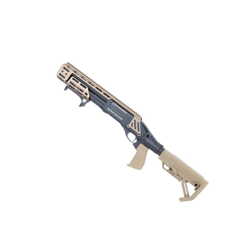Kompakt, gasdrevet pump-shotgun til CQB-spil. SA-VGS1 kombinerer metal-byggelementer med holdbar polymer, har M-LOK håndguard, teleskopisk kolbe og Picatinny-rail for optik — designet til hurtig håndtering, realistisk følelse og god tilpasningsmulighed med greb, lygte eller sigte. Et robust våben til spillere der vil have funktionalitet og taktisk fleksibilitet i tætte baner.