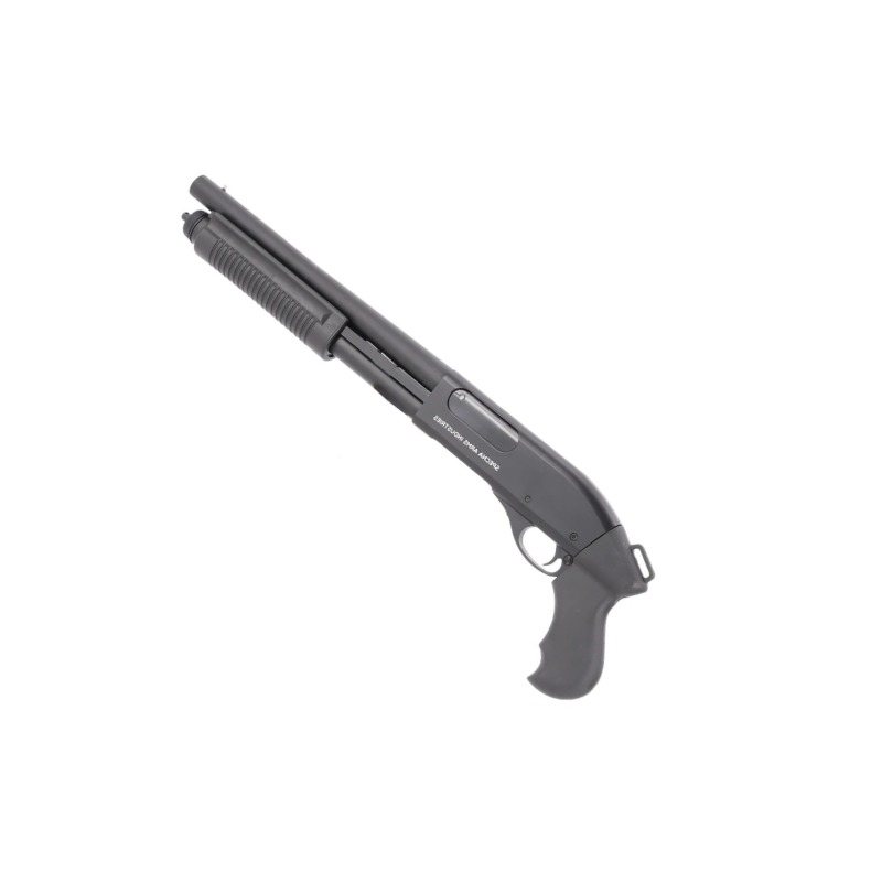 Metalbygning, ergonomisk pistolgreb med indbygget gasfyldningsventil og pump-handling med shells giver en autentisk, taktisk oplevelse hver runde. Våbnet tilbyder valg mellem 3 eller 6 BB pr. skud, så du kan tilpasse ildkraften efter situationen.