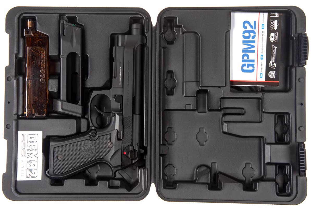 M9 Co2 pistol fra G&G som er fremstillet helt i metal og leveres med pistol kuffert. G&G M9 Co2 Blow Back modellen er i en flot sort farve og kommer med godt inderløb der sikre en lang og stabil kuglebane, og pistolen har realistisk vægt og design samt plads til hele 27 kugler i magasinet. G&G M9 Co2 pistolen har et godt og kraftigt blow back og ligger godt i hånden.