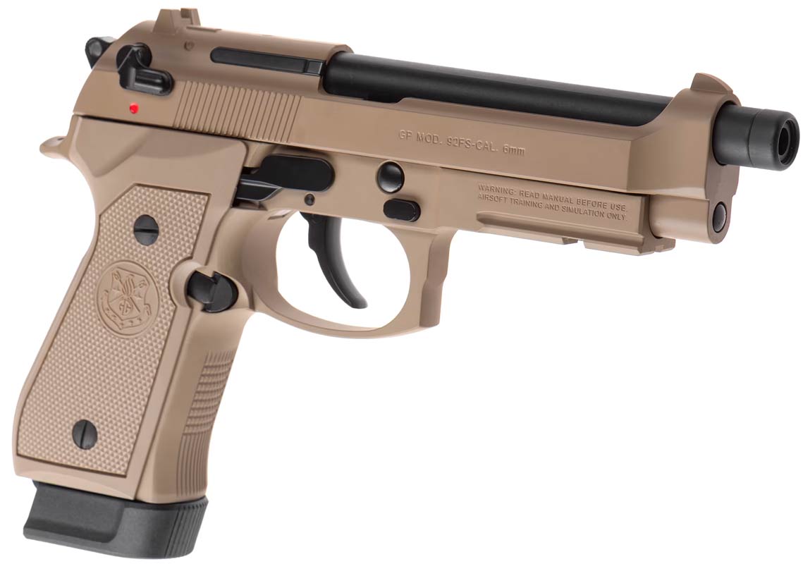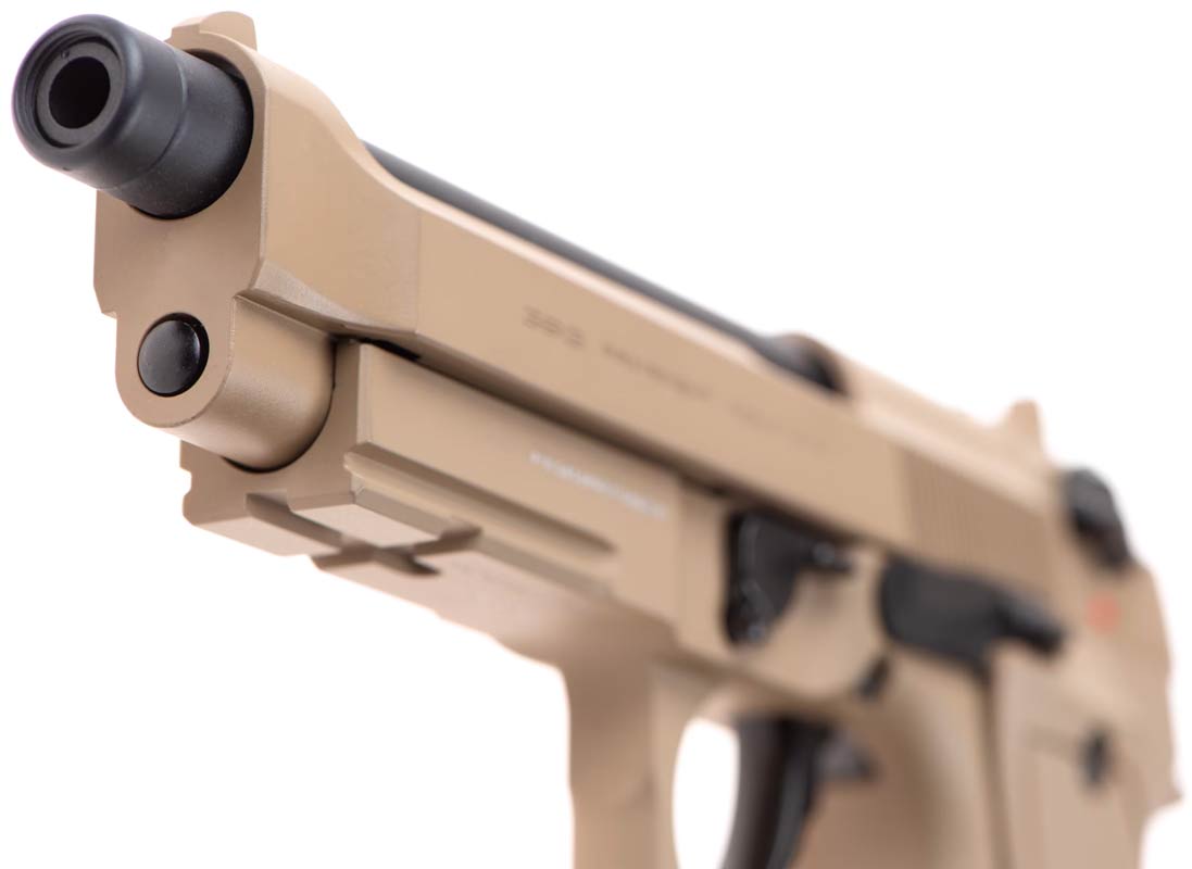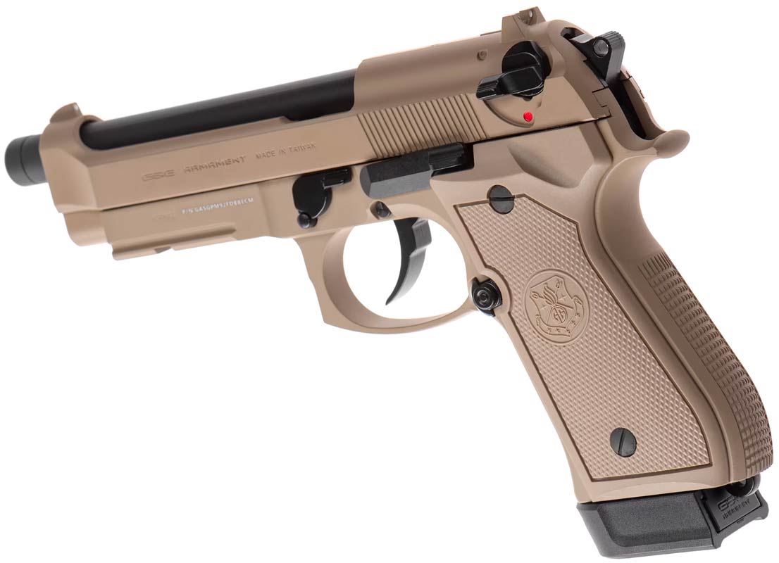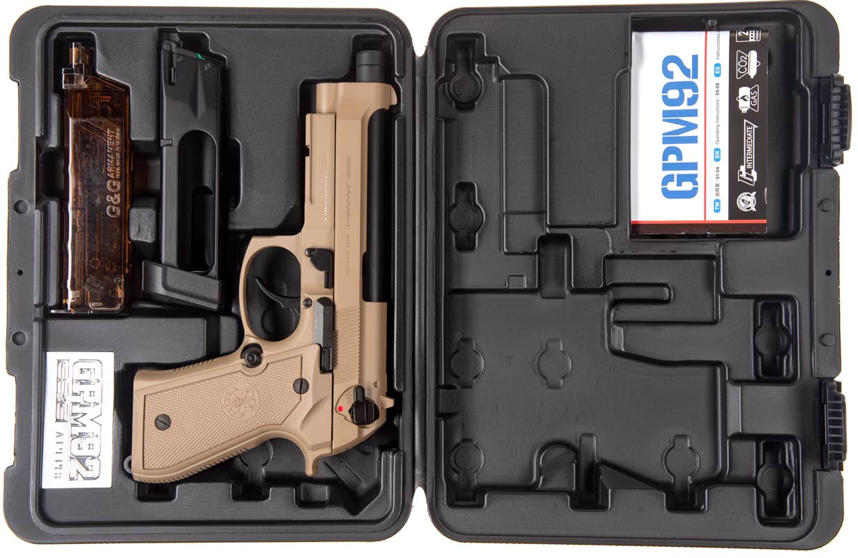 M9 Co2 pistol fra G&G som er fremstillet helt i metal og leveres med pistol kuffert. G&G M9 Co2 Blow Back modellen er i en flot desert farve og kommer med godt inderløb der sikre en lang og stabil kuglebane, og pistolen har realistisk vægt og design samt plads til hele 27 kugler i magasinet. G&G M9 Co2 pistolen har et godt og kraftigt blow back og ligger godt i hånden.