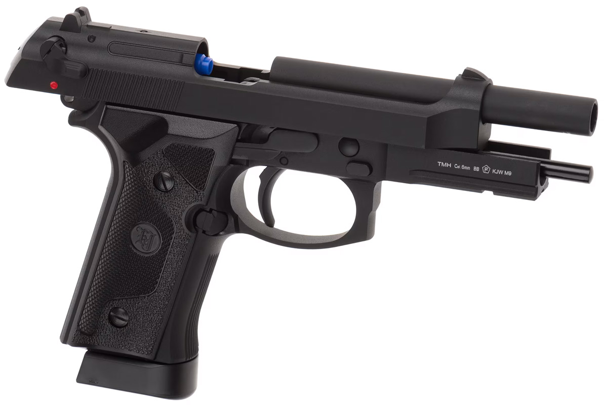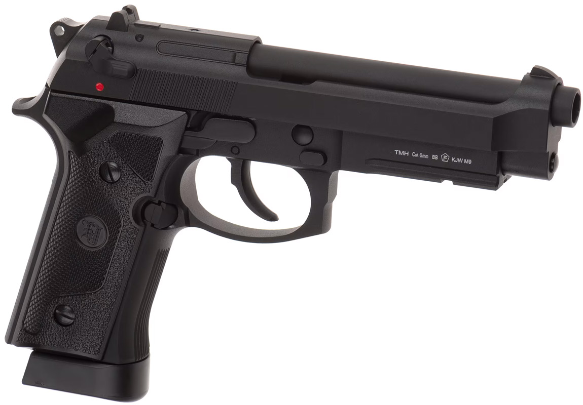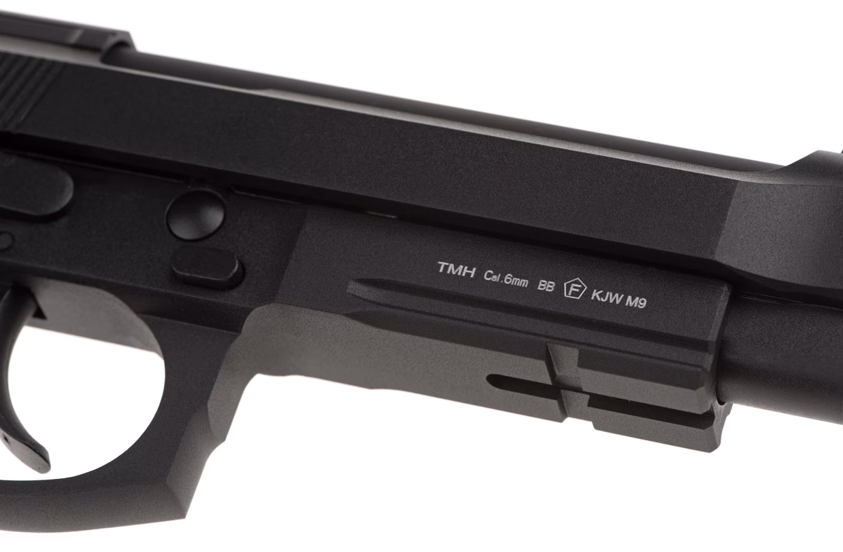 M9 IA Co2 Blow Back fuld metal. Full Metal tung M9 i en taktisk version af den populære M9. IA modellen har RAIL under løbet, så du kan montere lys og laser. Pistolen er lavet helt i metal og med et kratige blowback denne pistol er meget realistisk og bundsolid kopi af den klassiske M9 pistol. Hop-up er justerbar og magasinet har plads til 22 kugler. Pistolen kommer med kraftigt Blow Back, hvilket er med til at give dig en realistisk fornemmelse når du skyder. Data.: * Skyder ca. 110 m/s ( målt med 0,20g kugler ) * Magasinet kan holde på 22 kugler. * Vægt.: 1,1kg * Længde.: 21 cm. * Løbet måler 10,5 cm. * Kraftig Blow Back * Pistolen er helt i metal. * Justerbar hop up * Matrialet er metal med enkelte plast dele. * Producent er KJ-Works. Pakken indeholder.: * Pistol * Magasin til pistol * Lille pose med kugler * manual over pistolen Vi anbefaler 0,20g kugler til denne pistol. Husk at købe Bio kugler for et grønnere Milijø. Husk at købe Co2 til din pistol.