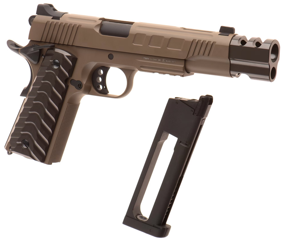 KP-16 er en pistol med et unikt design, helt i metal og med et kraftigt BlowBack. KP-16 modellen er bygget på den kendte M1911 platform og har et pistolgreb der sikre optimal greb for skytten. Pistolen skyder godt og har tydeligt markeret sigter for og bag.