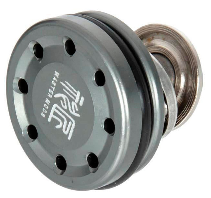 Master Mods alu stempelhoved Master Mods alu stempelhoved som er ventileret så det ikke laver vacuum. Master Mods alu stempelhoved kommer med kuglelejer på bagsiden, så det er med at at afstresse fjederen under belastning, og på den måde optimere ydeevnen. Godt og kraftigt Master Mods alu stempelhoved, som kan bruges til stort set alle løsninger. * Ventileret med 8 huller. * Kraftig O-ring som sikre optimal tæthed. * Kuglelejer på bagsiden. * Fremstillet i aluminium.