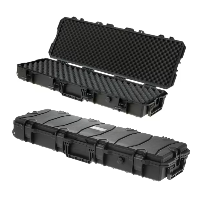 Rifle Hard Case 100 cm Wave Foam er en solid og pålidelig transport- og opbevaringsløsning til airsoftgeværer, jagtgeværer og andre langvåben. Kufferten er udviklet til at beskytte dit våben mod stød, slag, støv og fugt, uanset om den bruges til daglig opbevaring derhjemme eller under transport til skydebane, jagt eller airsoft-arrangementer.