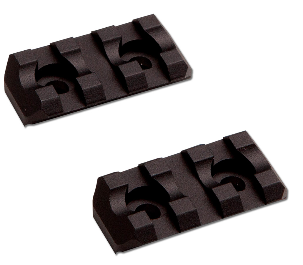 M-lok rails - 3 slots Pakke med 2 M-lok rails der hver har 3 slots. Pakken er komplet med skruer til montering. * M-lock rails måler 4 cm. * Antal slots.: 3 stk. * 2 rails i hver pakke. * Fremstillet i metal.