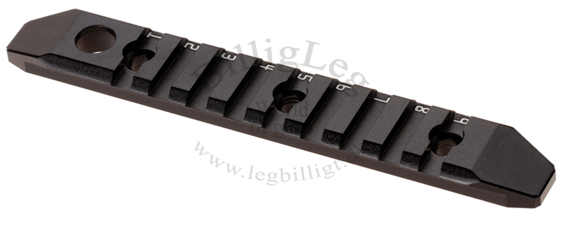 Keymod rail 7 slots Keymod rail i metal lige til at montere på din keymod. Pakken kommer komplet klar til montering * Rail er på 7 slots * Måler 12 cm * Fremstillet i metal.