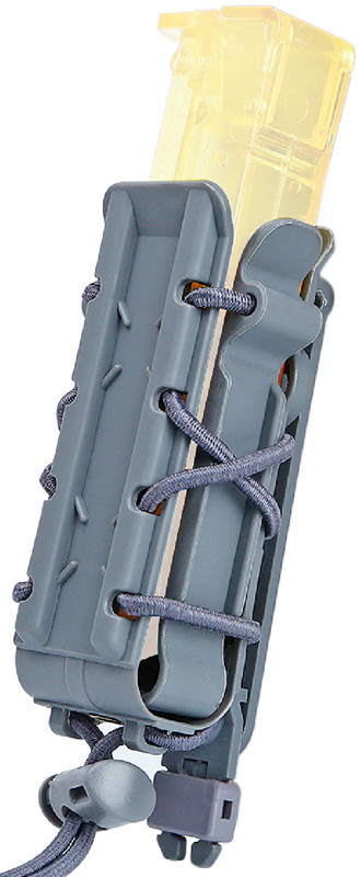 Molle pistol magasin lomme M1911 - Grå Swiss Arms pistol magasin lomme. Magasinet er fremstillet i nylon og TPR. Magasinet strammes med elastiksnor så dem holder godt på langt de fleste magasiner. Siderne på lommen er i plast som låser på magasinet og åbningen er vinklet så det er nemmere at isætte magasinet. Ydermere er der et bælteclip med så man kan montere magasin lommen på sit bælte med mulighed for at vinkle det som man ønsker. * Farven er grå. * Produceret af Swiss Arms. * Fremstillet i Nylon & TPR. * Elastik snor kan strammes. * Måler 12 x 4 x 5 cm ( H x D x B ). * Lommen passer til pistol magasiner. * Lommen kan monteres på molle systemer eller i bælte. Magasin lommen er vist med et magasin, som ikke medfølger!