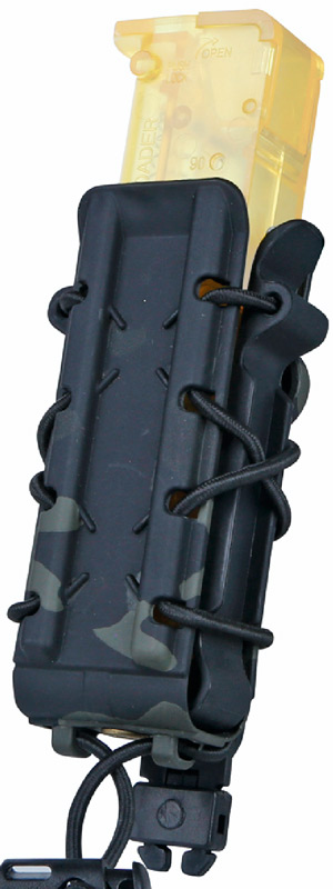Molle pistol magasin lomme M1911 - Sort multicam Swiss Arms pistol magasin lomme. Magasinet er fremstillet i nylon og TPR. Magasinet strammes med elastiksnor så dem holder godt på langt de fleste magasiner. Siderne på lommen er i plast som låser på magasinet og åbningen er vinklet så det er nemmere at isætte magasinet. Ydermere er der et bælteclip med så man kan montere magasin lommen på sit bælte med mulighed for at vinkle det som man ønsker. * Farven er sort multicam. * Produceret af Swiss Arms. * Fremstillet i Nylon & TPR. * Elastik snor kan strammes. * Måler 12 x 4 x 5 cm ( H x D x B ). * Lommen passer til pistol magasiner. * Lommen kan monteres på molle systemer eller i bælte. Magasin lommen er vist med et magasin, som ikke medfølger!