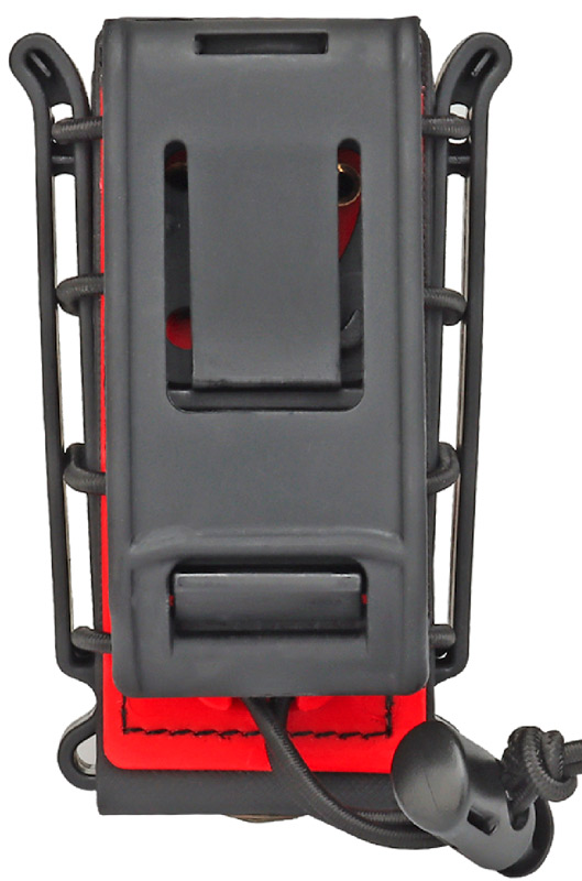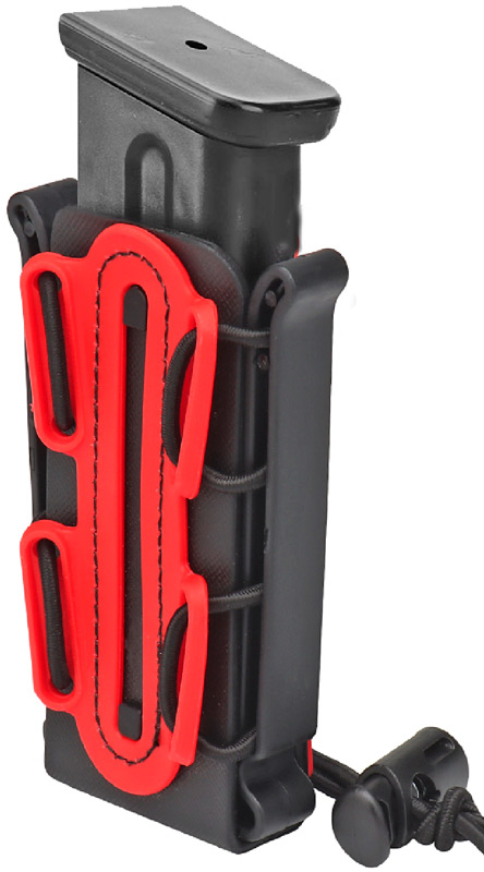 Magasinet strammes med elastiksnor så dem holder godt på langt de fleste magasiner. Siderne på lommen er i plast som låser på magasinet og åbningen er vinklet så det er nemmere at isætte magasinet.