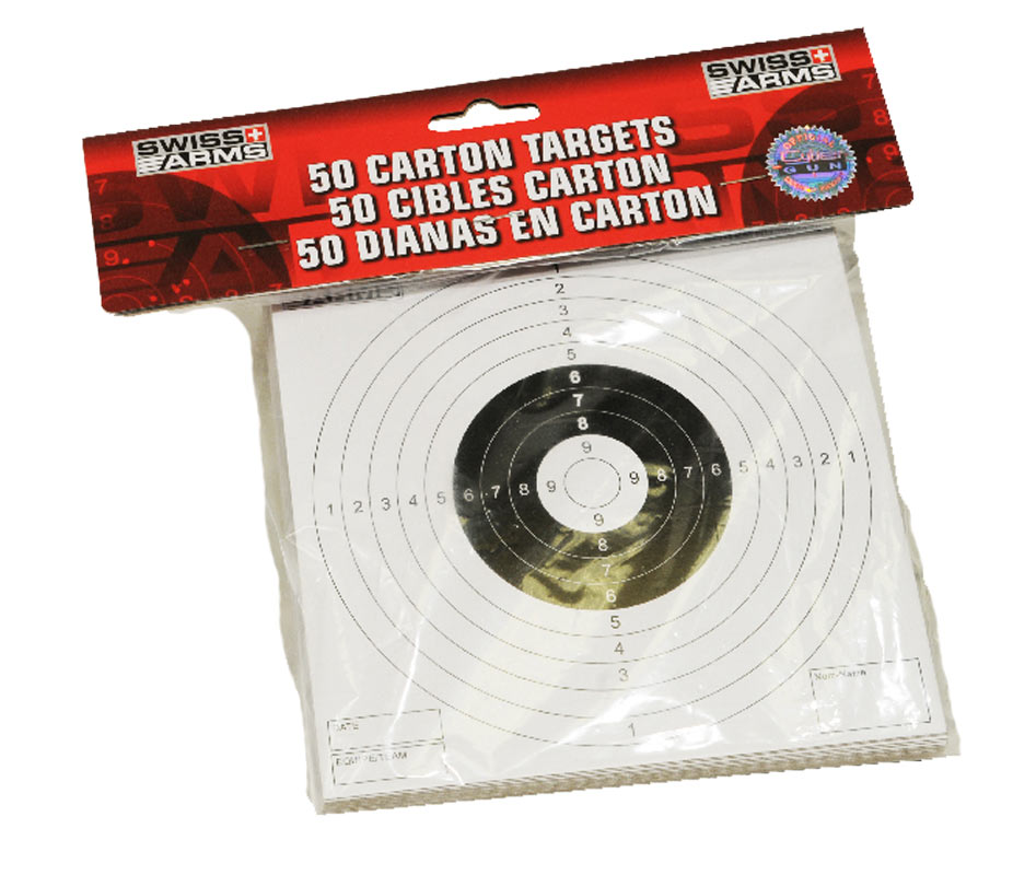 Skydeskiver i pap - 50 stk. Pakke med 50 stk. skydeskiver i kraftigt pap. Passer til metal skydekasser og måler 14 x 14