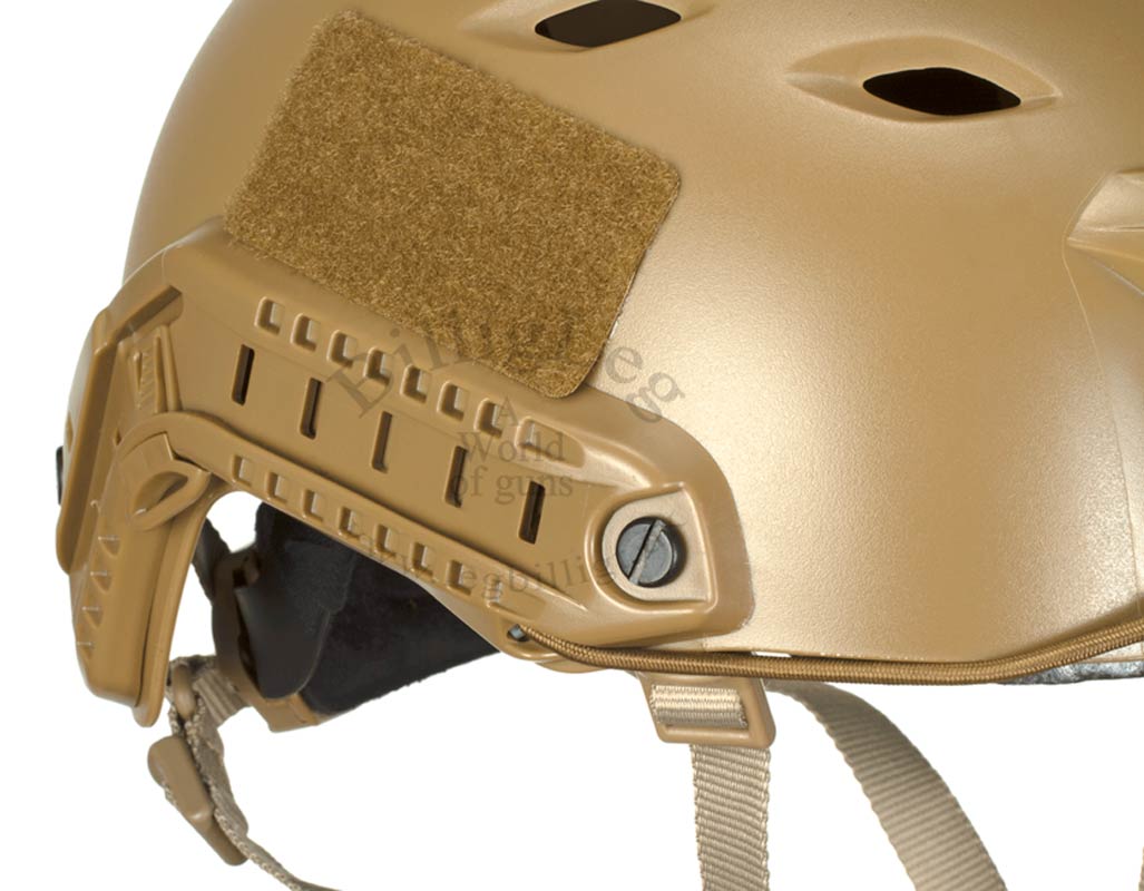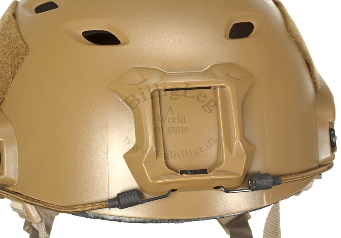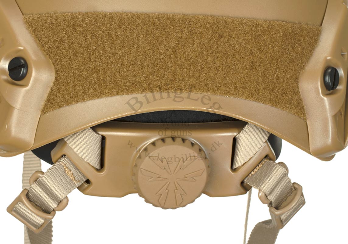 Kamphjelm som kommer i sandfarve med montage til div. udstyr på siden, samt mulighed for velcro montering. Fast helmet Emerson black kommer med justerbar indsats så den kan tilpasses langt de fleste, let og hurtigt. Hjemlen er fremstillet i kraftigt plast med justerbar remme og lufthuller i toppen. God kamphjelm der sidder god på de fleste.