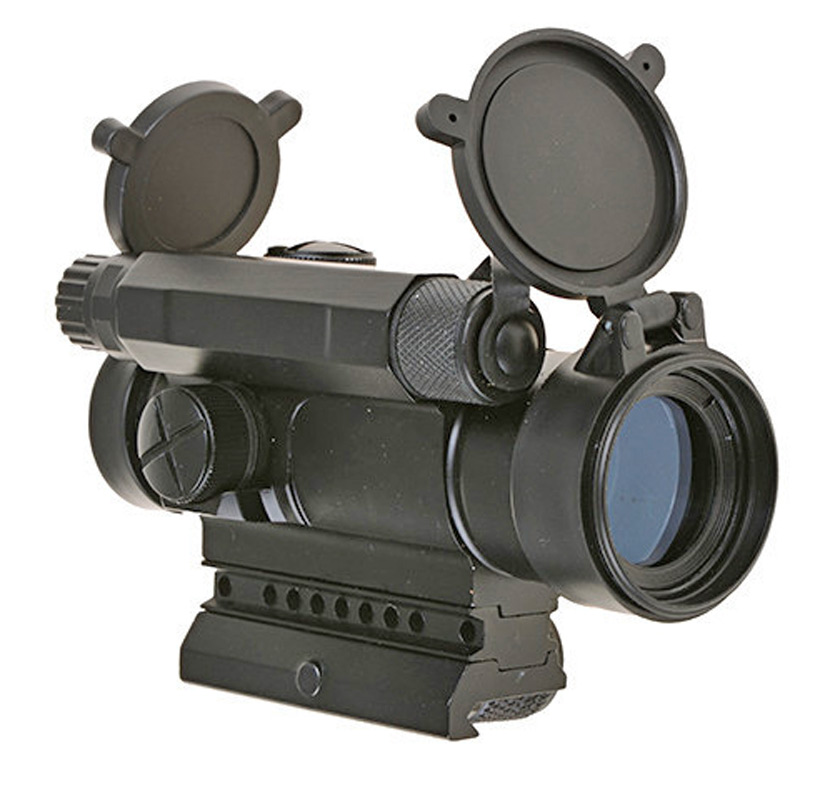 Operator rødpunktsigte Operator rødpunktsigte som er fremstillet i aluminium med mil-std-1913 montage. Sigtet kommer med linse beskytter samt rød / grøn sigte prik der kan justeres i 5 lysstyrker. Operator rødpunktsigte er let at justere og montere på alle 21 mm rails. * Vægten er 420g * linsen er Ø45 mm * sigte billedet er en prik * vælg mellem rød eller grøn prik. * Justerbar lysstyrke * Passer på 21 mm rails. * 3 x AG13 batterier medfølger.