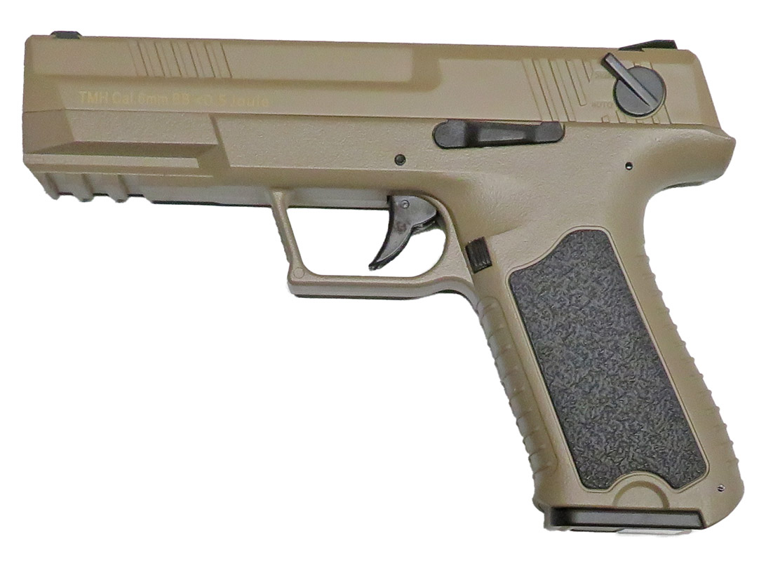 Phantom CM 127 El pistol En el pistol fra cyma som er bygget over en kendt platform. Pistolen kommer med mulighed for full eller semi auto som vælges let på siden. Under løbet er der 21 mm rail til montering af div. udstyr og tilbehør. Phantom CM 127 El pistol kommer med metal gearing samt gearboks. Sættet leveres komplet med batteri og lader, klar til brug. Data.: * Skyder 58 m/s ( målt med 0,20g kugler ) * Magasinet kan holde på 30 kugler. * Længden er 20,5 cm, * Løbet måler 11,5 cm * Hop up er justerbar. * Vægten er 570g * gear og gearboks er helt i metal. * Batteri og lader medfølger. * Ramme og slæde er i robust abs plast. * Farven er tan ( billedets farve snyder lidt ) Pakken indeholder.: * Phantom CM 127 El pistol * Magasin til pistolen * Speedloader * Batteri * Lader * Rense pind * Manual over pistolen * Lille pose med kugler. Husk at købe ekstra kugler og skydebriller.