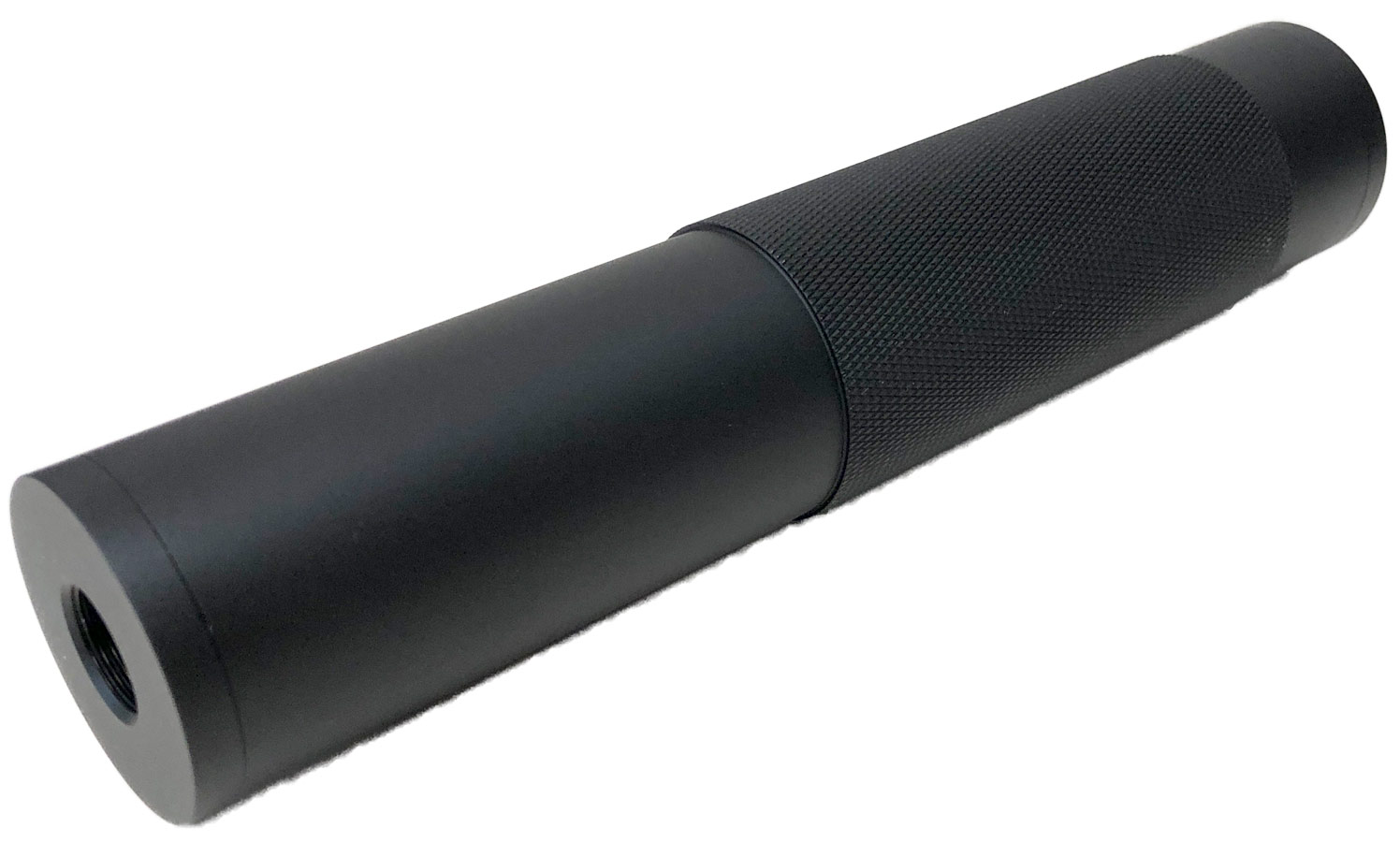 Lyddæmper - Nato 5.56 Nato 5,56 lyddæmper i metal som kommer med flot overflade. Lyddæmperen er fremstillt i kraftigt matriale og leveres med 2 typer gevind så den kan benyttes på de fleste rifler. * Fremstillet i metal * Måler 19 cm. * Ø 3,5 cm. * Passer på 14 mm CW / CCW gevind * Farven er sort